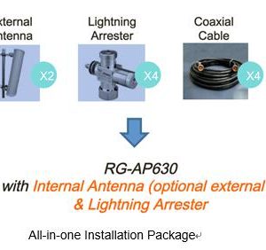 – Dòng AP ngoài trời RG-AP630 cung cấp cho bạn gói cài đặt một cửa. Tất cả mọi thứ bạn cần bao gồm từ ăng-ten bên ngoài đến thiết bị chống sét và cáp đồng trục, để triển khai ngoài trời dễ dàng.